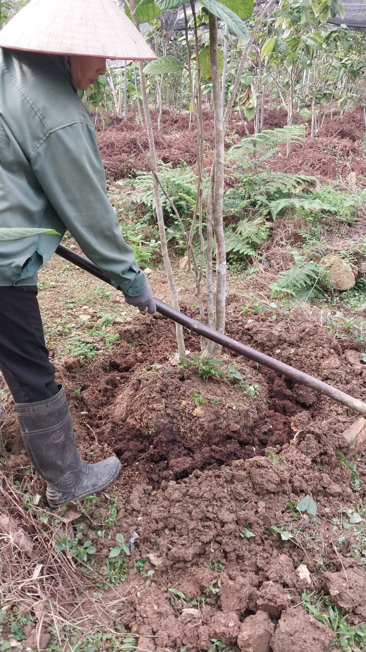 24-12-2024 12:12:00 Làm cỏ Tién hành làm cỏ kết hợp xới xáo và tủ gốc cho cây trà bằng xác thực vật trong vườn Hoàn thành