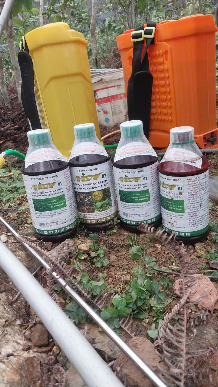 12-06-2024 12:06:00 Bảo vệ thực vật Tiến hành phun chế phẩm sinh học Anisaf 01, 02 và 03 để phòng trừ các loại sâu hại, các bệnh về nấm và virus gây ra cho cây. Cách dùng: pha tỉ lệ 200ml mỗi loại chế phẩm /20 lít nước phun cho toàn bộ vườn Hoàn thành