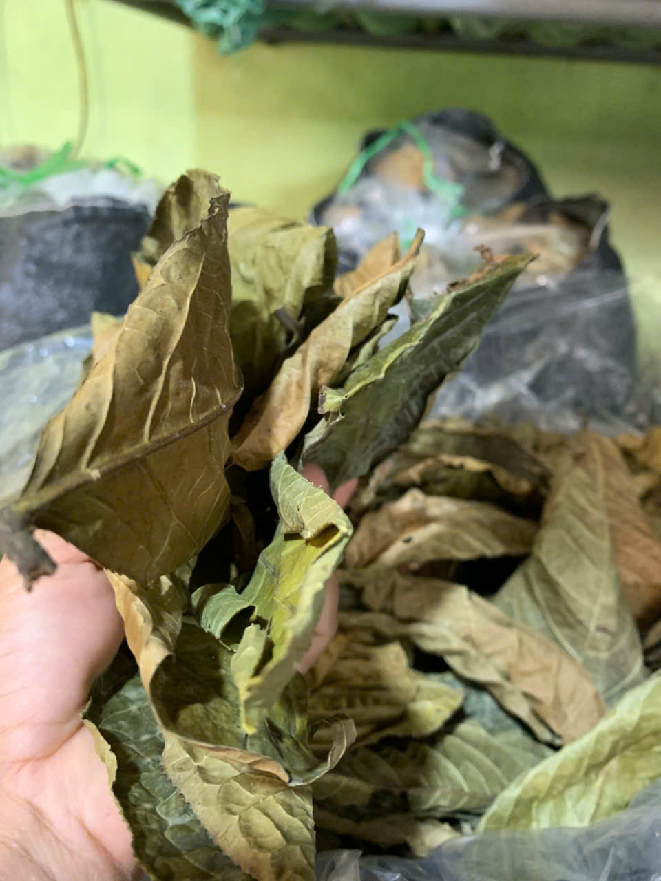 | 18-09-2025 12:09:00 | Nhà kho bảo quản | Nhập kho tổng khối lượng thu hoạch lá Trà hoa vàng sau các đợt thu hoạch là: 19 (Kg). Lá trà được đóng trong bao nilon trong suốt và đựng trong bao tải dứa rồi xếp lên giá riêng biệt trong kho chứa dược liệu. | Hoàn thành |